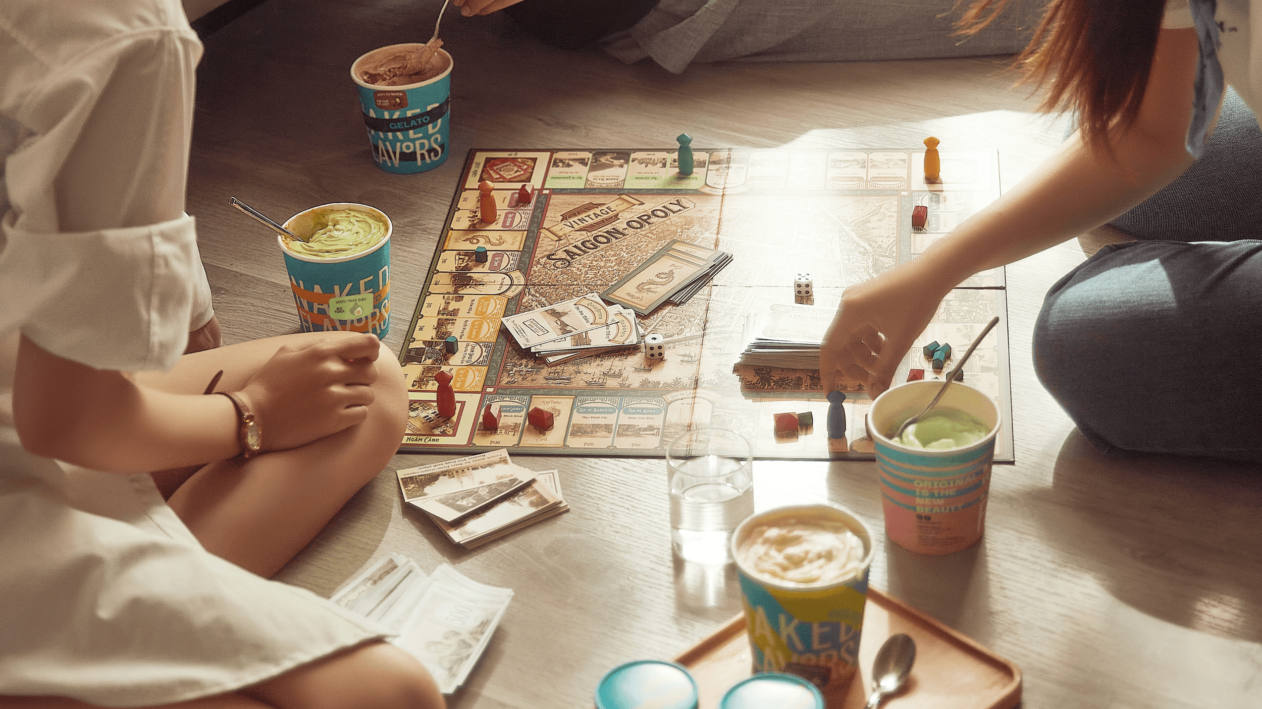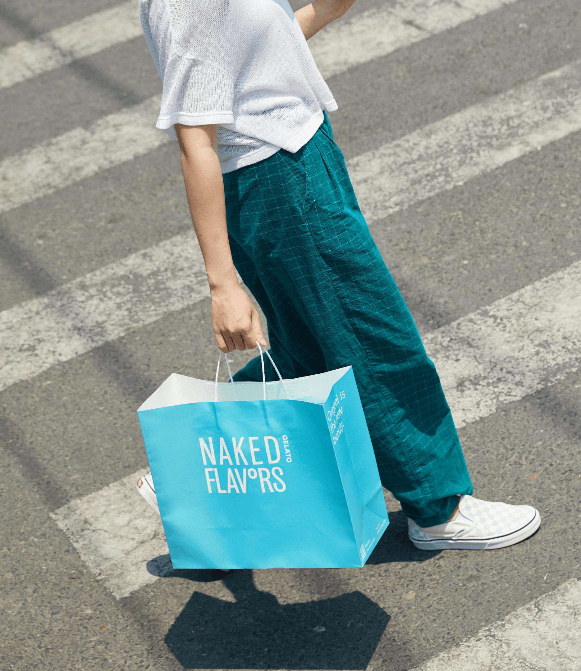 The heart of Naked Flavors lies in its bold typography, an assertion of confidence that demands attention. ‘Naked Flavors’, true to its name, conceals its identity in a vibrant dreamscape. The brand name becomes a puzzle, a game of hide-and-seek amidst the riot of colorful patterns. Uncovering the brand becomes an interactive and delightful experience, akin to the anticipation that precedes the first scoop of gelato.
